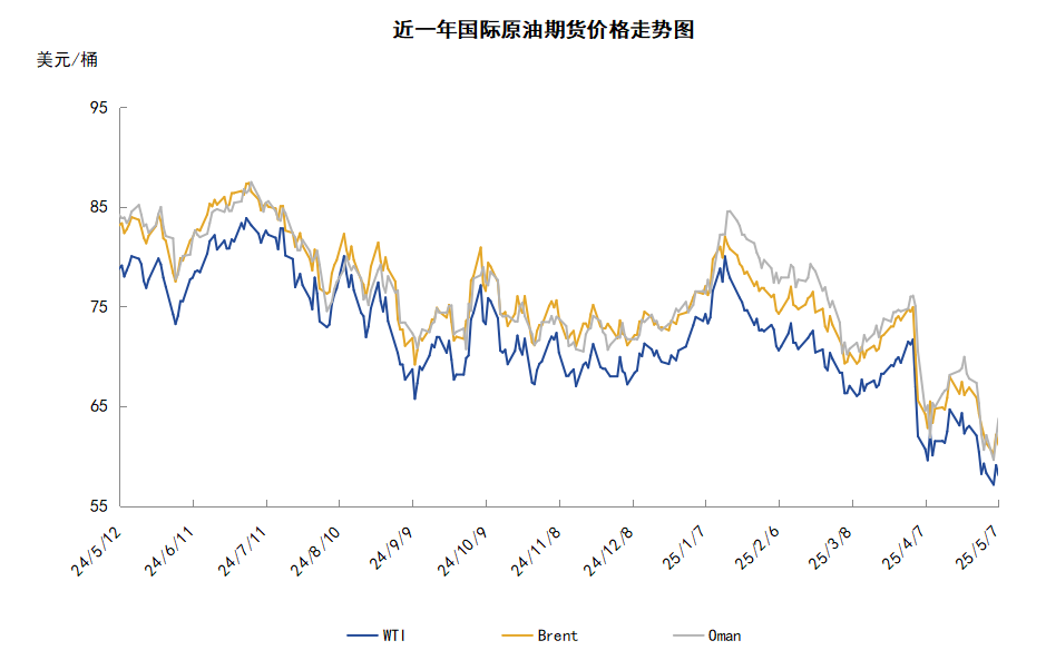 国际原油价格整体呈现先扬后抑的走势,周度均价环比小涨。WTI均价59.07美元/桶,较前一周上涨0.20美元/桶,或0.34%。