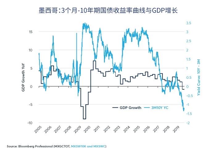 图2:墨西哥的收益率曲线预示墨西哥将出现衰退。衰退是否已经来临