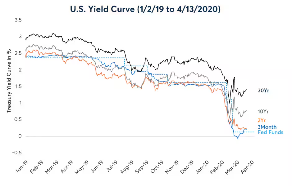 图3:2019年1月1日至2020年4月13日的美国国债收益率