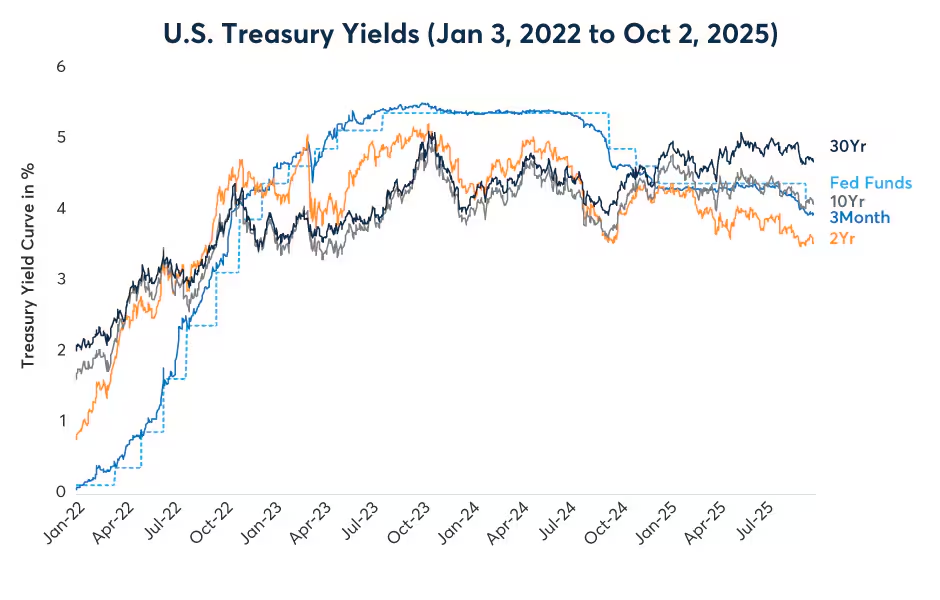 图4:2022年1月1日至2025年10月2日的美国国债收益率