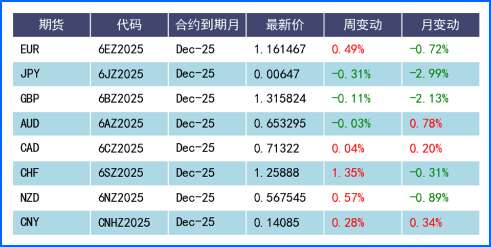 美元兑日元上周再度走高,并于周五在九个月高位处窄幅震荡。日本高层强调维持宽松金融环境,压制了短期内的加息预期,目前市场预计12月加息概率约24%、明年1月约46%。但同时日本财政与经济部门言论警示,又引发市场对汇率干预担忧,限制了日元空头力量。日本央行认为消费动能改善、核心物价趋近目标,部分观点称通胀达标或推动未来数月加息。