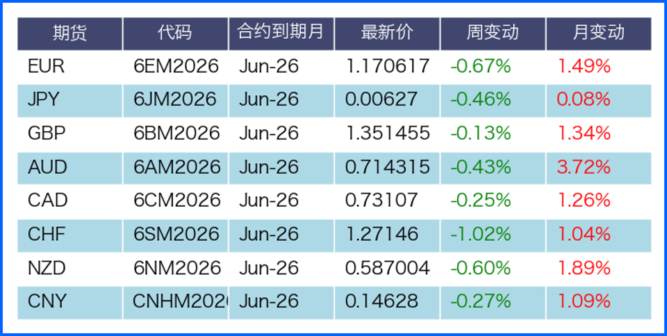 过去一周,美元指数受中东地缘不确定性与美联储政策预期主导,整体呈现震荡偏强格局。中东局势反复推升市场避险情绪,资金回流美元提供汇价核心支撑。同时,能源价格高企加剧全球通胀压力,市场对美联储延长紧缩周期、维持高利率的预期持续升温,进一步巩固美元强势基础。后续可重点关注美联储政策信号与中东局势进展,应会较大影响美元能否延续之前强势顺利反弹。