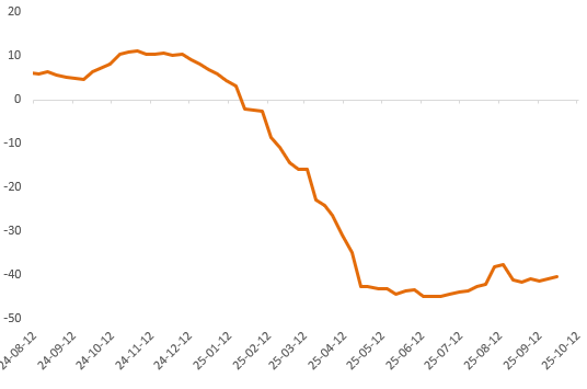 上周铜精矿TC周指数为-40.53美元/干吨,较上周涨0.06美元/干吨。铜精矿市场呈现供需博弈加剧、加工费持续承压的态势。现货TC(加工费)普遍维持在-40左右,市场对未来加工费走势存在分歧,但多数参与者认为短期内难有显著反弹,近日有贸易商与炼厂成交作价期为M+5的11月船期货物-40低位美元/千吨,近期报盘回跌至-45美元/干吨,市场参与者认为现在主流成交-40左右不变,且12月船期货物需求量较大,近期矿山与贸易商招标有明显下降,市场对未来走势预期普遍偏悲观。