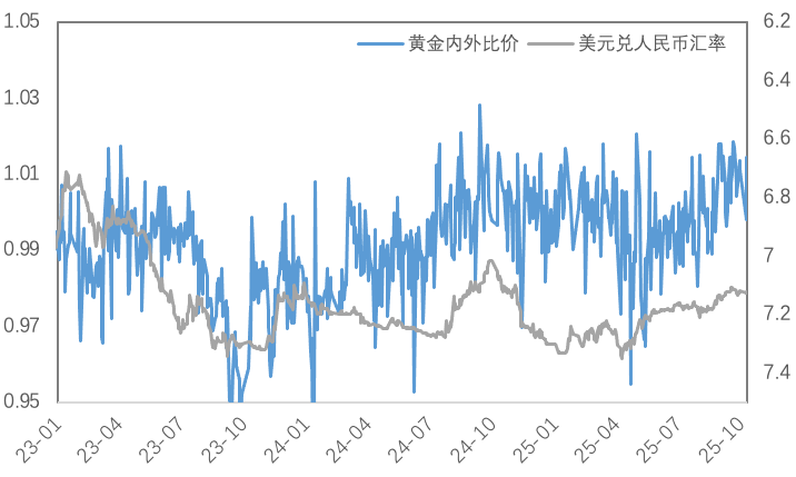 近期人民币汇率影响较前期增强,上周黄金内外价差及比价小幅回升,白银内外价差及比价同样有所回升。
