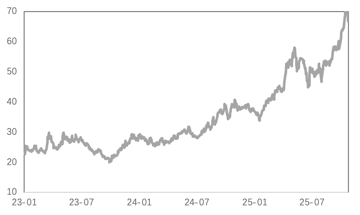 持仓方面,SPDR黄金ETF持仓环比减少0.29吨至1047吨,SLV白银ETF持仓环比减少78吨至15420吨;因数据延迟发布,截至9月23日,COMEX黄金非商业总持仓为39.9万手,其中非商业多头持仓增加6030手至33.3万手,空头持仓增加5691手至6.61万手;非商业多头持仓占优,比例较上周下降至62.9%附近,非商业空头持仓占比上升至12.5%左右。