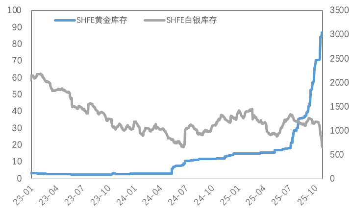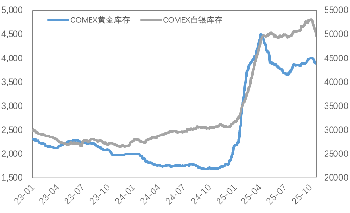 库存方面,上周COMEX黄金库存为3888万盎司,环比减少约23万盎司,COMEX白银库存约为49695万盎司,环比减少约1251万盎司;SHFE黄金库存约为87吨,环比增加2.4吨,SHFE白银库存约为665吨,环比减少约255吨。