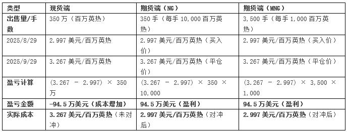 完全对冲效果:现货额外成本被期货盈利抵消,实际成本仍为2.997美元/百万英热。