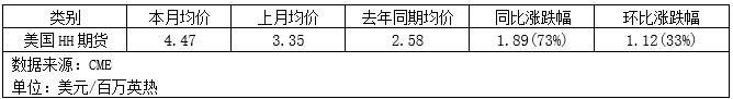 11月美国亨利港(Henry Hub,以下简称HH)天然气期货整体呈现坚挺上涨走势,月均价同环比上涨。