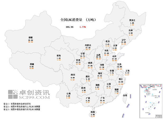 需求方面,11月全国LNG消费量约为395.99万吨,较上月增长1.77%,较去年同期增长10.22%。11月国内LNG消费量环比出现增长,主要受LNG价格在月内逐步下跌以及北方开启供暖后带来一定取暖方面的需求增量影响,不过,由于北方大部分地区降温有限,管道气资源整体较为充裕,LNG作为调峰资源的需求增量不大,因此环比增幅不高。