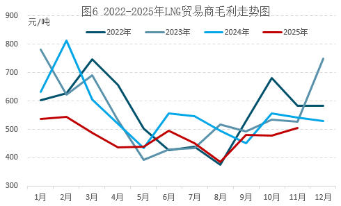 备注:因进口LNG套利计算采用中华人民共和国海关总署发布的进口LNG月度价格计算,该数据滞后一个月,因此图中2025年数据滞后一个月。