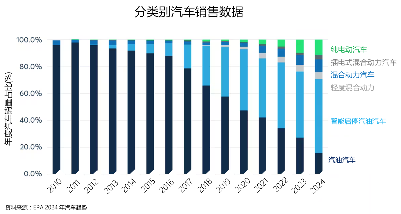 市场的不安情绪加剧,原因是对全球原油需求可持续性的担忧日益增加。汽车技术的快速进步,特别是电动汽车和混合动力汽车销量的增长,正在重塑市场格局。传统内燃机也变得更加高效,配备了“汽油启停”等技术,在汽车临时停车时(如在交叉路口)会自动关闭发动机。这些技术进步预计将使普通驾驶员的燃油消耗量每年减少约3%,对原油需求造成较大影响。